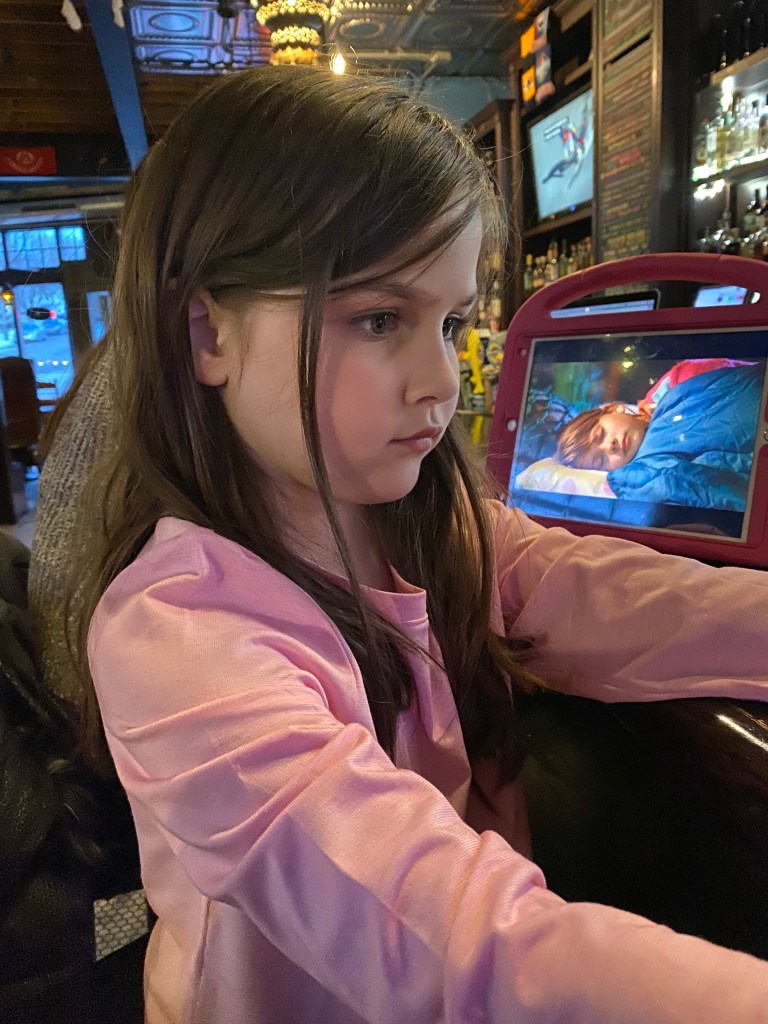 Last week, we were kicked out of our place 8:30AM to past 6:30PM with an unusable kitchen so we spent our days at the restaurant after school. I have the most sociable child and I’m not quite sure where she got it from. She has no problem going up to a kid and asking if they want to play her games with her (this happened Monday). Or forcing the bartender’s husband into playing her Nintendo Switch with her (Tuesday). Or asking a couple people at the bar to scooch over so we can fit in (Wednesday). Or, my favorite, the time she roped a regular (now friend) and the bartender into creating barbie clothes out of gloves and napkins with her.